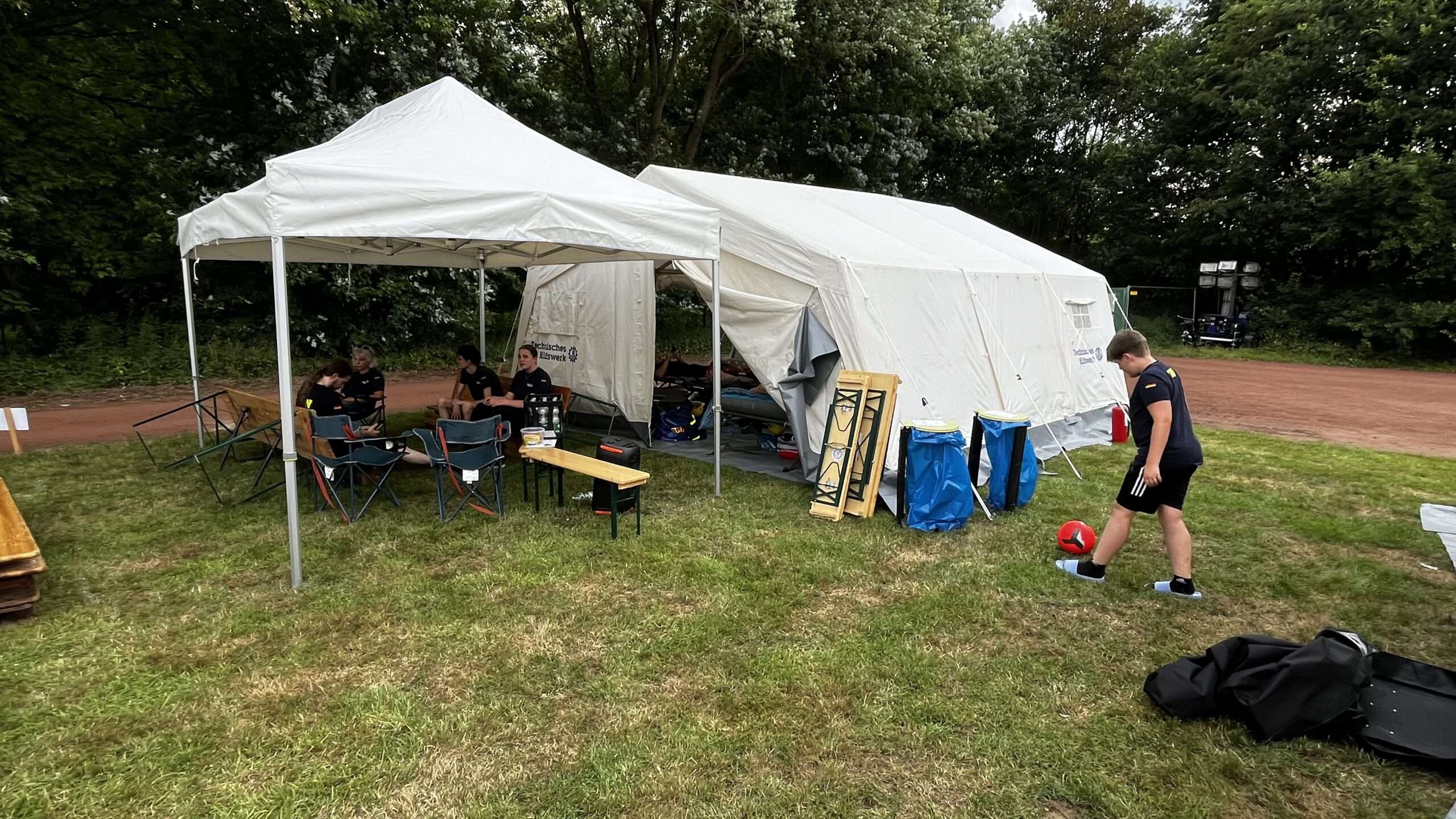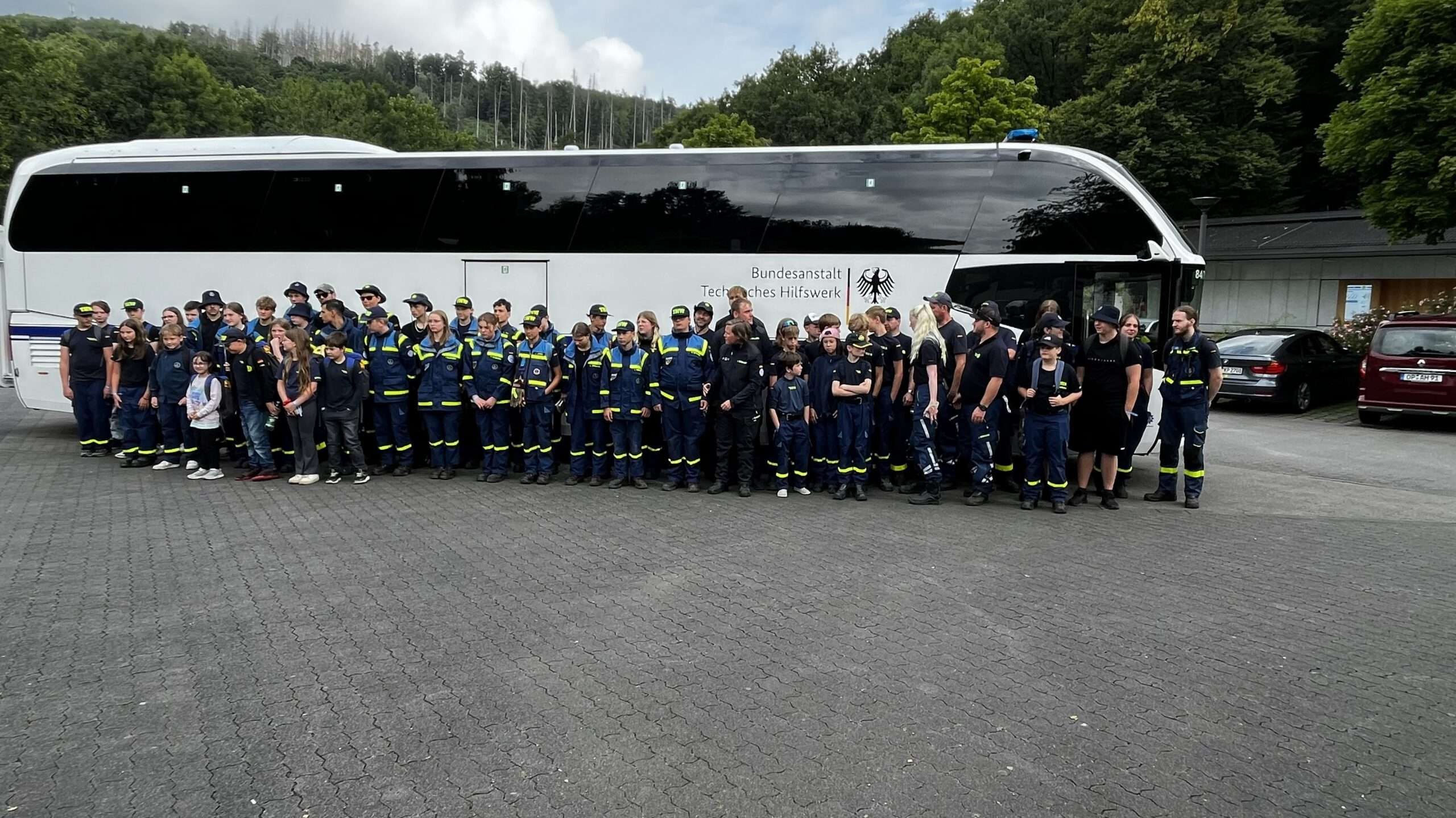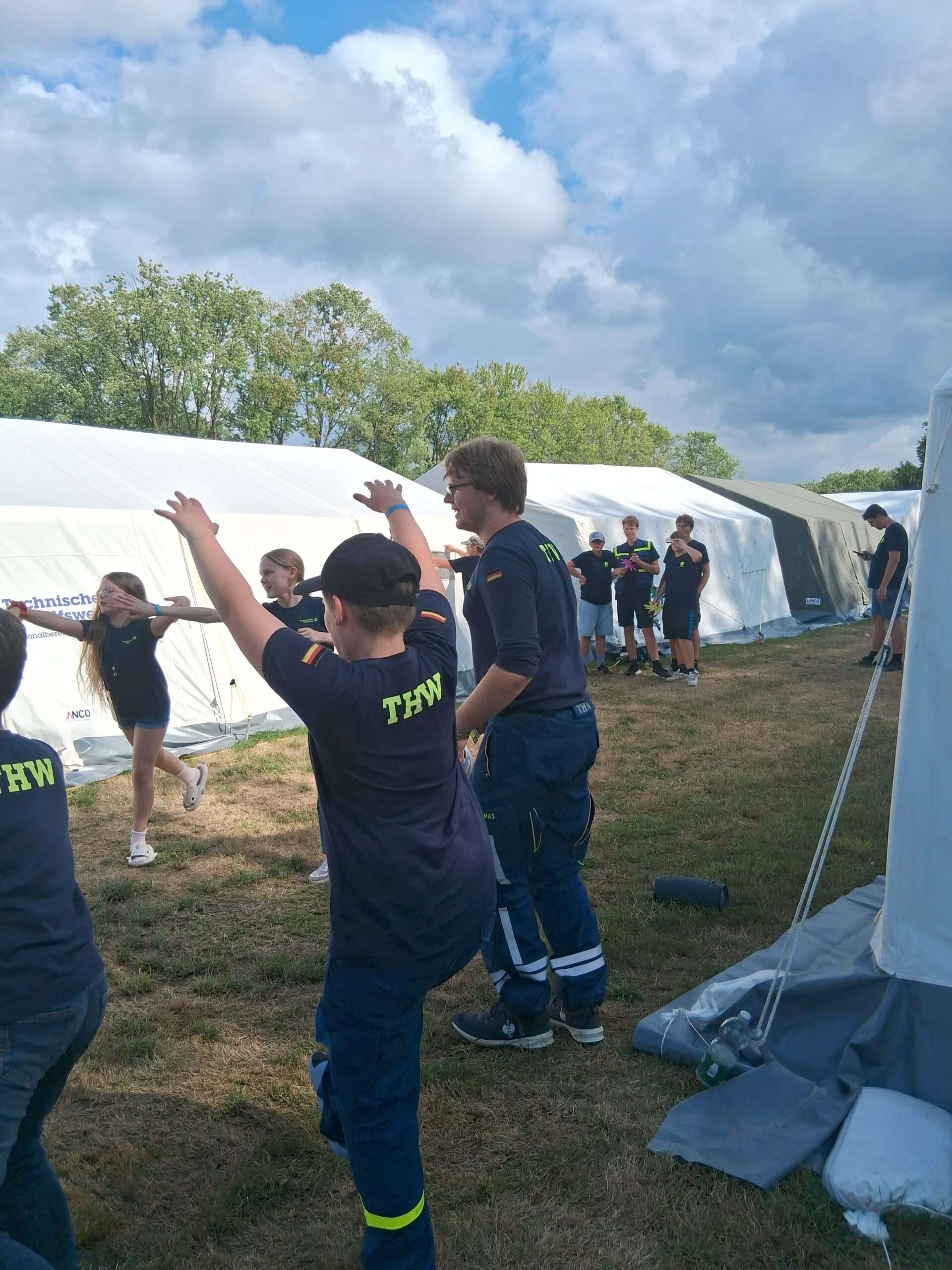 Nach der ersten Nacht im Schlafsack und Zelt stand der Sonntag unter dem Zeichen des Blaulichts. Auf dem Lagergelände wurden verschiedene besondere Fahrzeuge und Einheiten des THW vorgestellt. Bevor es jedoch ans Staunen und Fragen ging, gab es zunächst eine Begrüßung durch die Lagerleitung, die Landesjugend, den Landesbeauftragten, den Ortsbeauftragten aus Lünen sowie den Oberbürgermeister der Stadt Lünen.