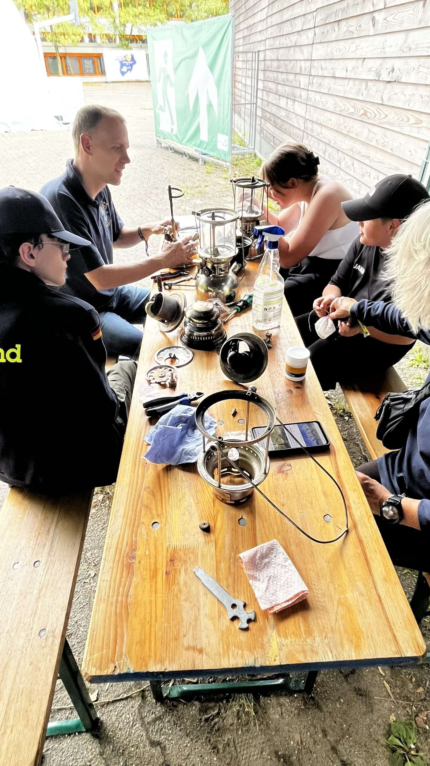 Dieses Mal reisten wir ein paar Jahre in der THW-Geschichte zurück und nahmen am Workshop „Petromax reparieren“ teil. Nachdem wir in den Tiefen unseres Lagers noch sieben dieser Schmuckstücke gefunden hatten, hatten wir genug Arbeit mitgebracht. Allerdings waren nicht alle Lampen nach ihrer langen Standzeit im Handumdrehen wieder funktionsfähig – trotz der Fülle an Ersatzteilen, die die Workshopleitung bereitgestellt hatte. Am Ende konnten wir den Workshop stolz mit zwei weiteren funktionierenden Exemplaren abschließen.